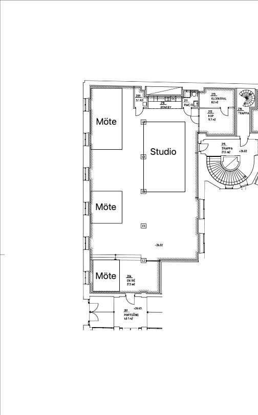 Planlösningen är flexibel och kan anpassas efter behov – perfekt för både kontor, showroom eller annan verksamhet. Lokalen är utrustad med två WC och har ett modernt uttryck som gör det enkelt att skapa en representativ och funktionell arbetsplats. Sittande hyresgäst har anpassat lokalen med en tillbyggnad av ljudstudio som går vid behov att ta bort helt.