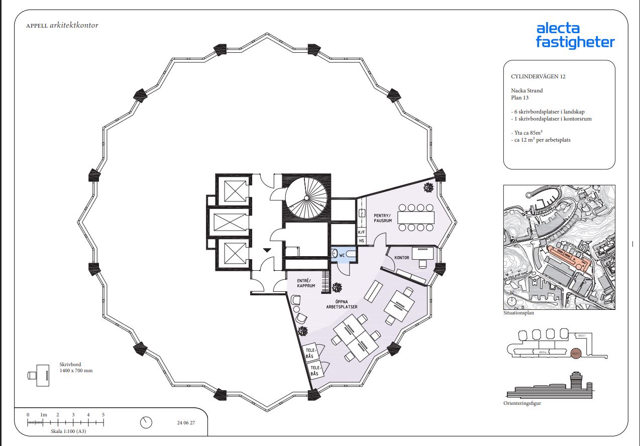 Med sin placering på plan 13 så erbjuder kontoret en fantastisk utsikt som inspirerar varje arbetsdag. Området erbjuder dessutom all tänkbar service såsom restauranger, gym, mataffär, blomsteraffär och mycket mer – allt för att underlätta arbetsvardagen.
