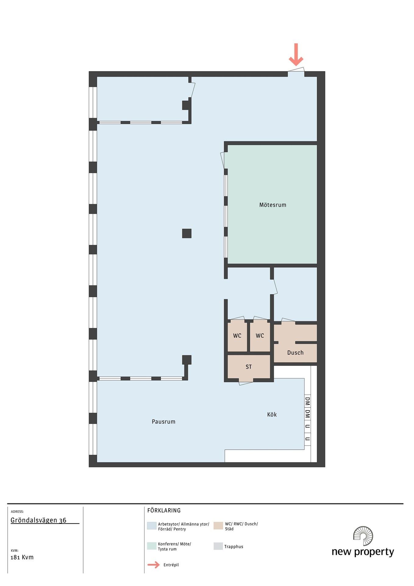 Ljus lokal som idag är i stort sett öppen.: Två bra mötesrum i anslutning till entrén. Nyrenoverat pentry med matplats.