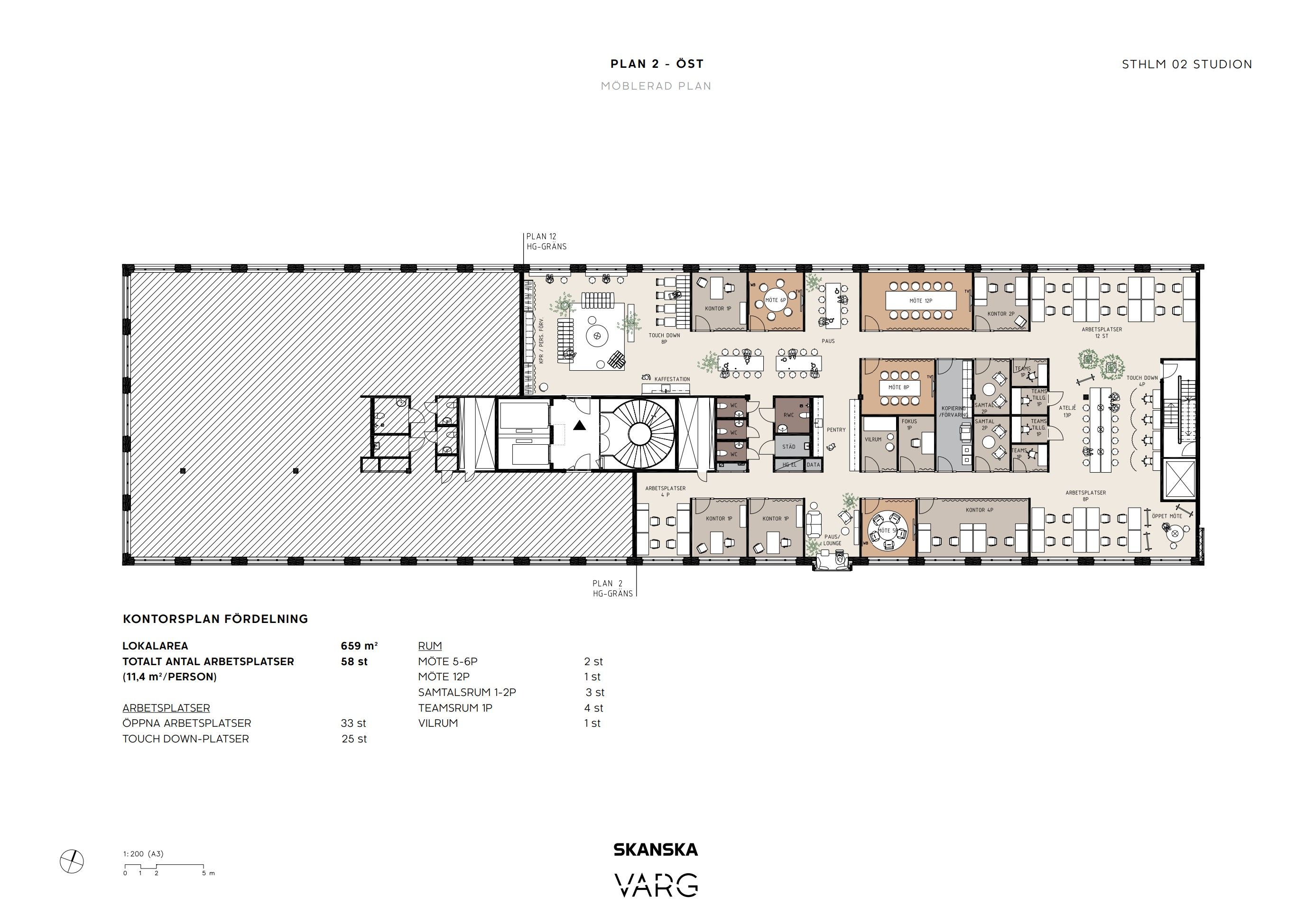 Sthlm 02 Studion upplevs som den lekfulla och integritetsstarka lillasystern till skyskrapan Sthlm 01, men tro inte för en sekund att hon hamnar i skymundan för det. Huset för morgondagens behov! Sthlm 02 Studion är ett hus utformat för gemenskap och nytänkande. Kontoren är anpassade för framtidens arbetsförhållanden. Huset som är byggt i en komplex miljö – mellan industri och händelsernas centrum – andas ett lugn som bidrar till kreativa tankar och idéer. Passa på att unna dig gudomliga bakverk, matiga bagels och grymt kaffe i husets café BAK, jobba i loungen eller ta ett möte i konferensrummet. Övrigt: Kreativa Stockholm har flyttat söderut! Nu samlas stadens innovativa företag i ett helt nytt distrikt söder om Hammarby kanal – Sthlm New Creative Business Spaces.