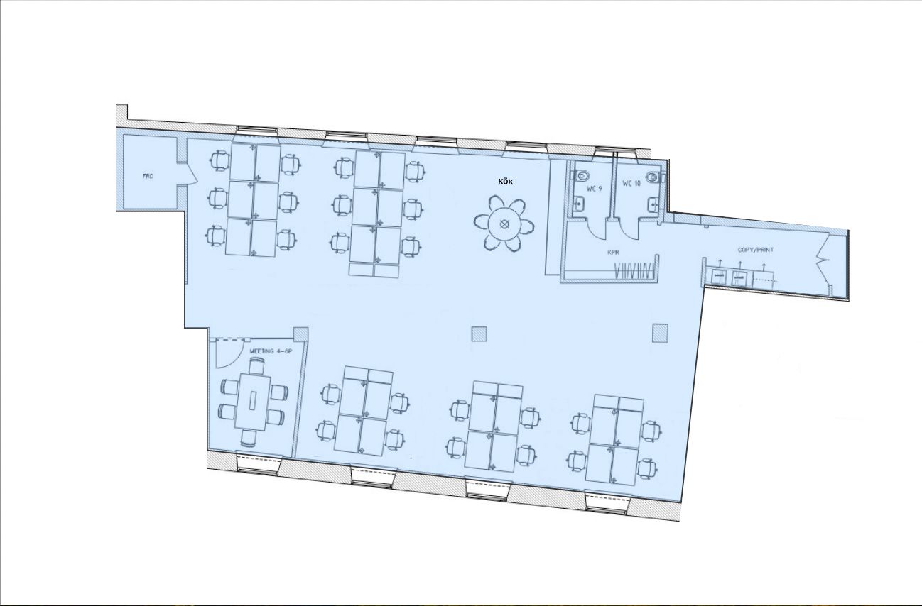 Nu finns denna yteffektiva kontorslokal om ca. 210 kvm. Ytan lämpar sig perfekt för ca. 24 arbetsplatser, trevligt mötesrum och det finns goda möjligheter att vara med och påverka ifall man önskar få till ett större utbud av mötes/konferensrum. Pentryt och ytskikten har precis genomgått en totalt renovering till en hög standard.