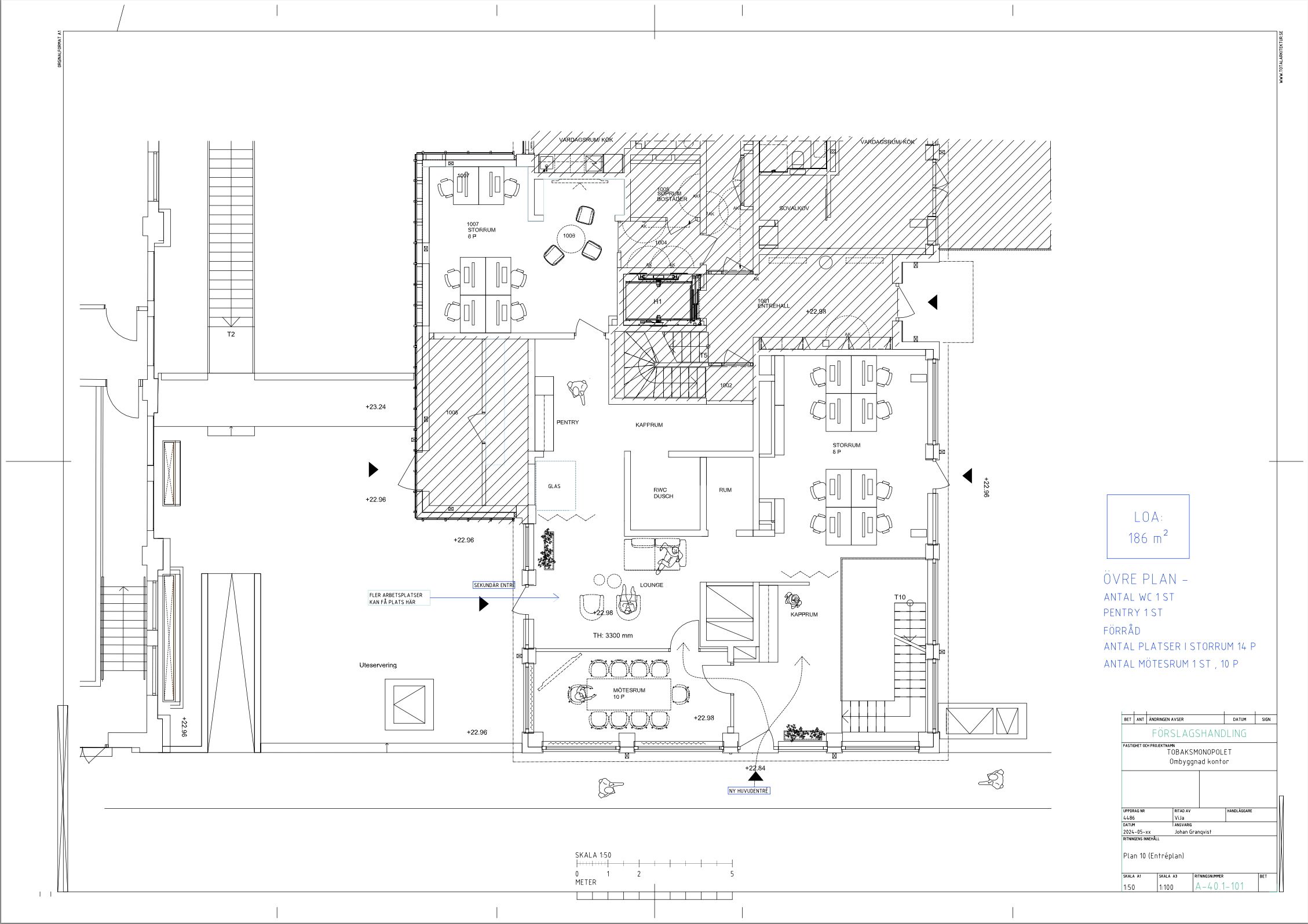 Nu finns chansen att hyra en representativ lokal i två plan med interntrappa. På entréplanet välkomnas du av en ljus loungeyta med fikastation, mötes och telefonrum samt öppen arbetsyta. Härifrån nås även fastighetens trevliga innergård som hyresgästerna har tillgång till.