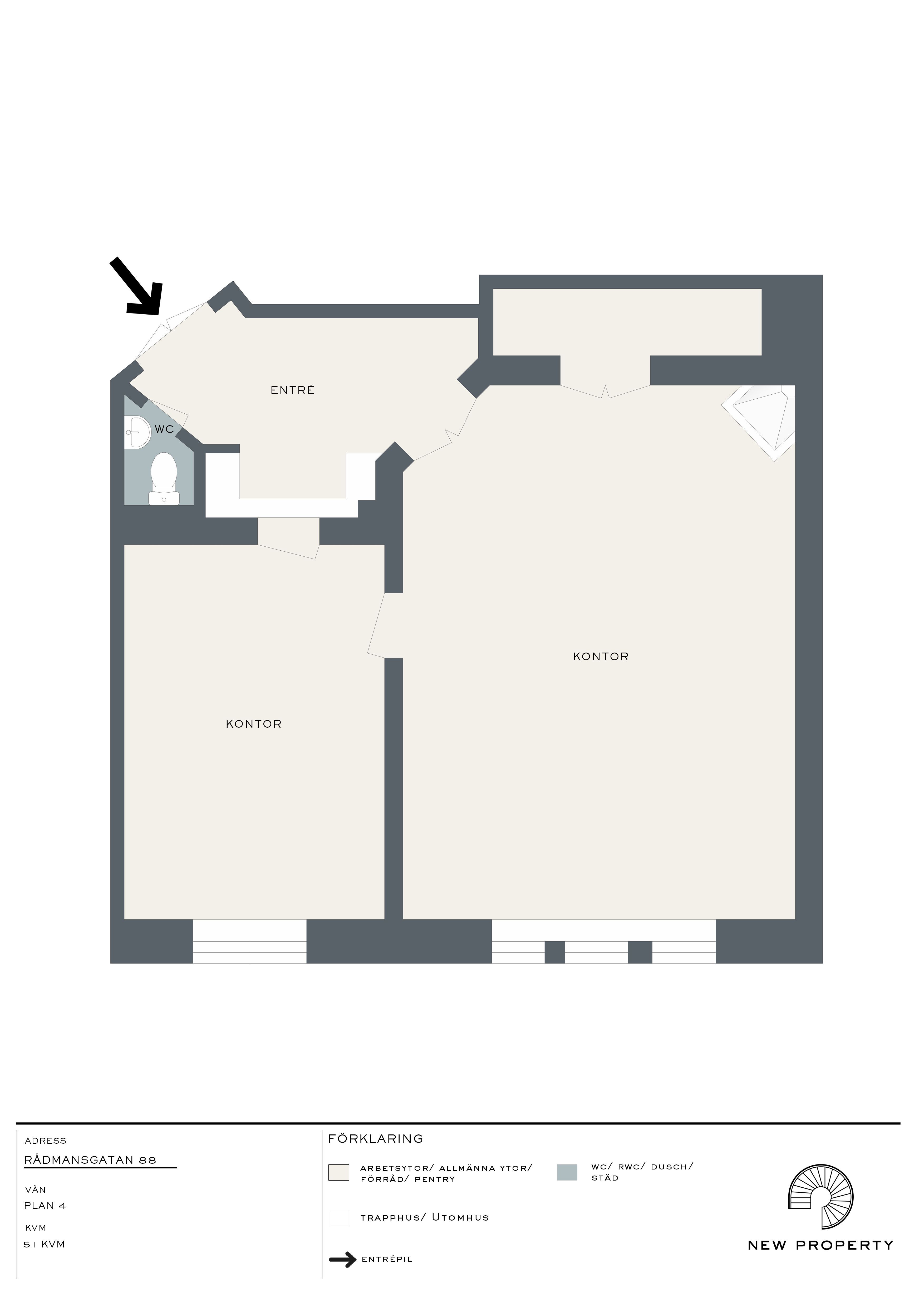 Välkommen till Rådmansgatan 88 och denna ljusa kontorslokal om 54 kvm med attraktivt läge intill Tegnérlunden. Lokalen erbjuder en effektiv planlösning och lämpar sig väl för det mindre företaget som söker en representativ adress i centrala Stockholm.