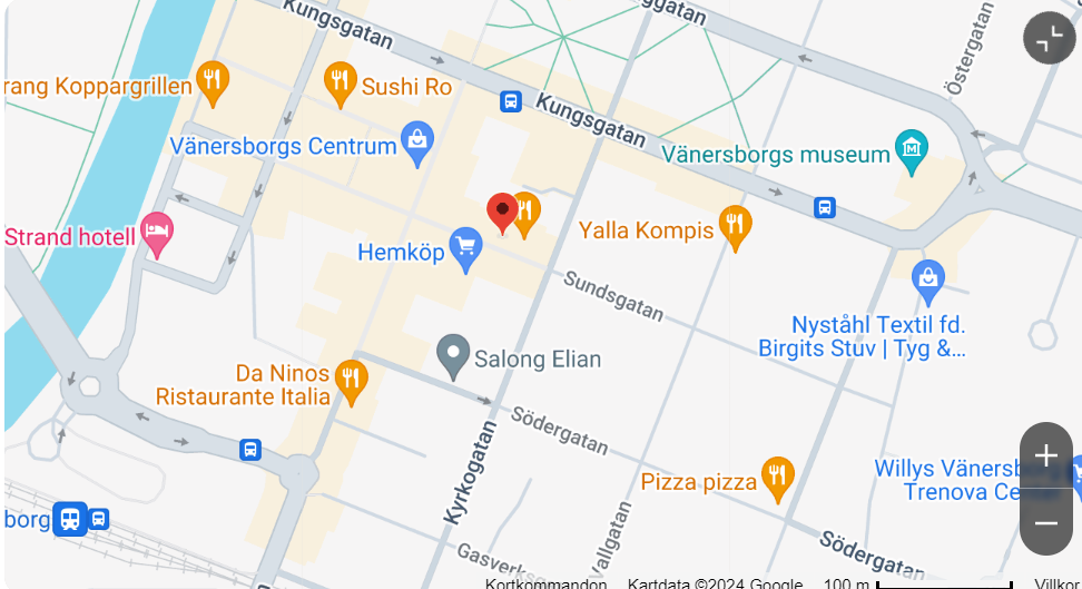 Sundsgatan 16, som ligger perfekt beläget i Vänersborgs centrum, bara 5 minuters promenad från Vänersborgs museum, erbjuder ditt företag premiumkontor med ett eftertraktat läge. Välj ett kontor som angränsar till en gågata och utför ditt bästa arbete någonsin i en lugn miljö. När du är på resande fot eller vill föra samman ditt arbetslag för möten kan du använda de utmärkta transportförbindelserna i närheten som gör pendlingen till en barnlek. Du når E45:an på 2 minuter med bil, och Vänersborgs tågstation ligger bara 500 meter från tröskeln till ditt kontor.