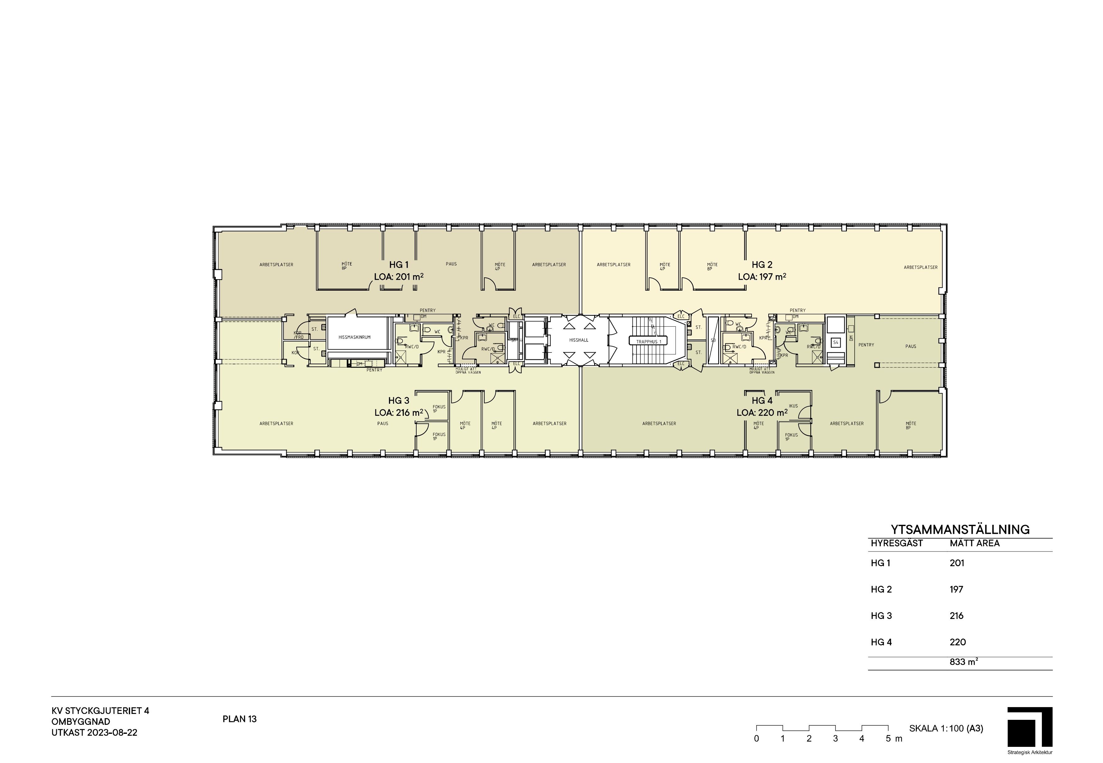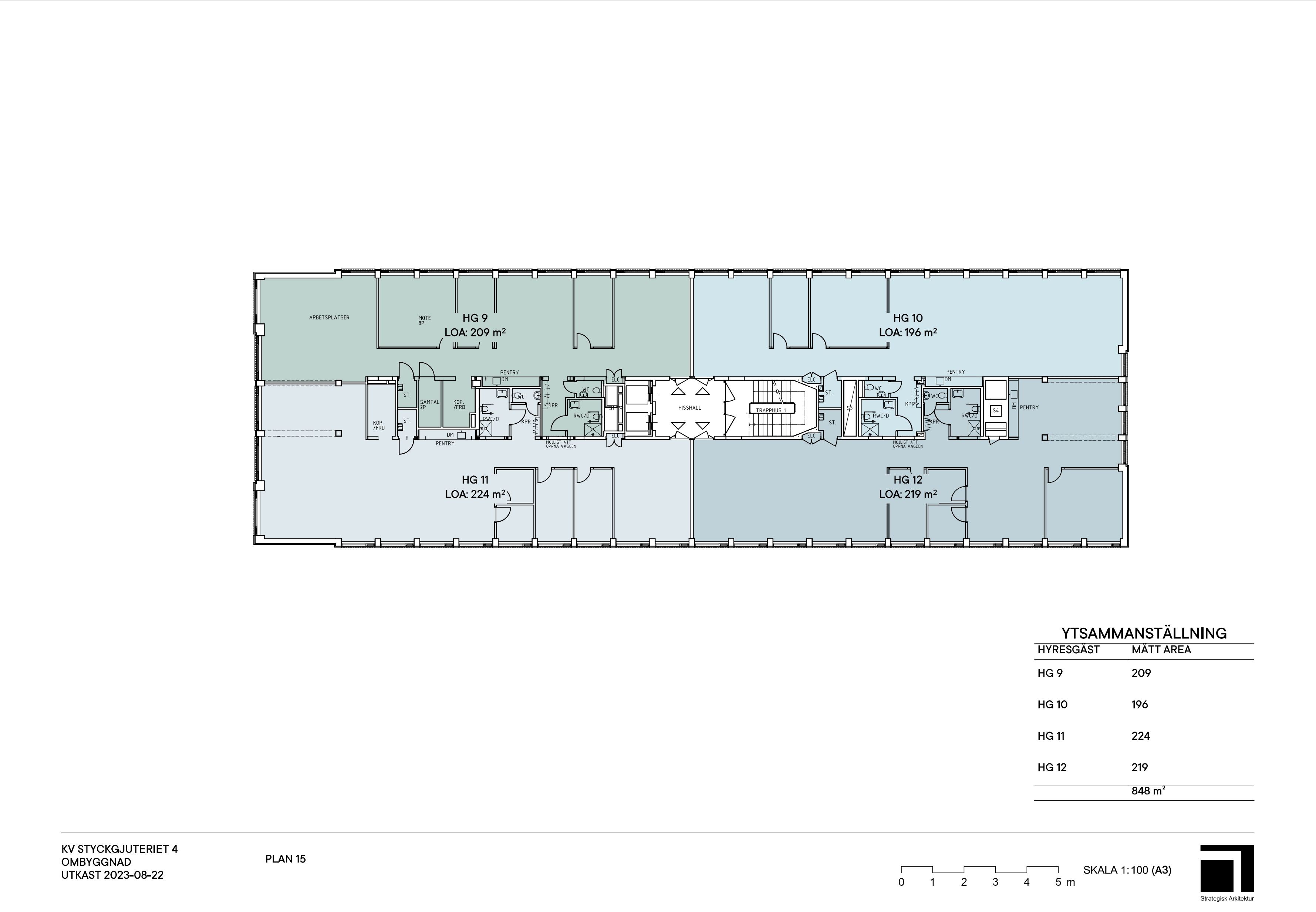 Våning 2 - 838 kvm. (uppdelning från 196 kvm): Våning 3 - 848 kvm. (uppdelning från 197 kvm): Våning 4 - 848 kvm. (uppdelning från 197 kvm)