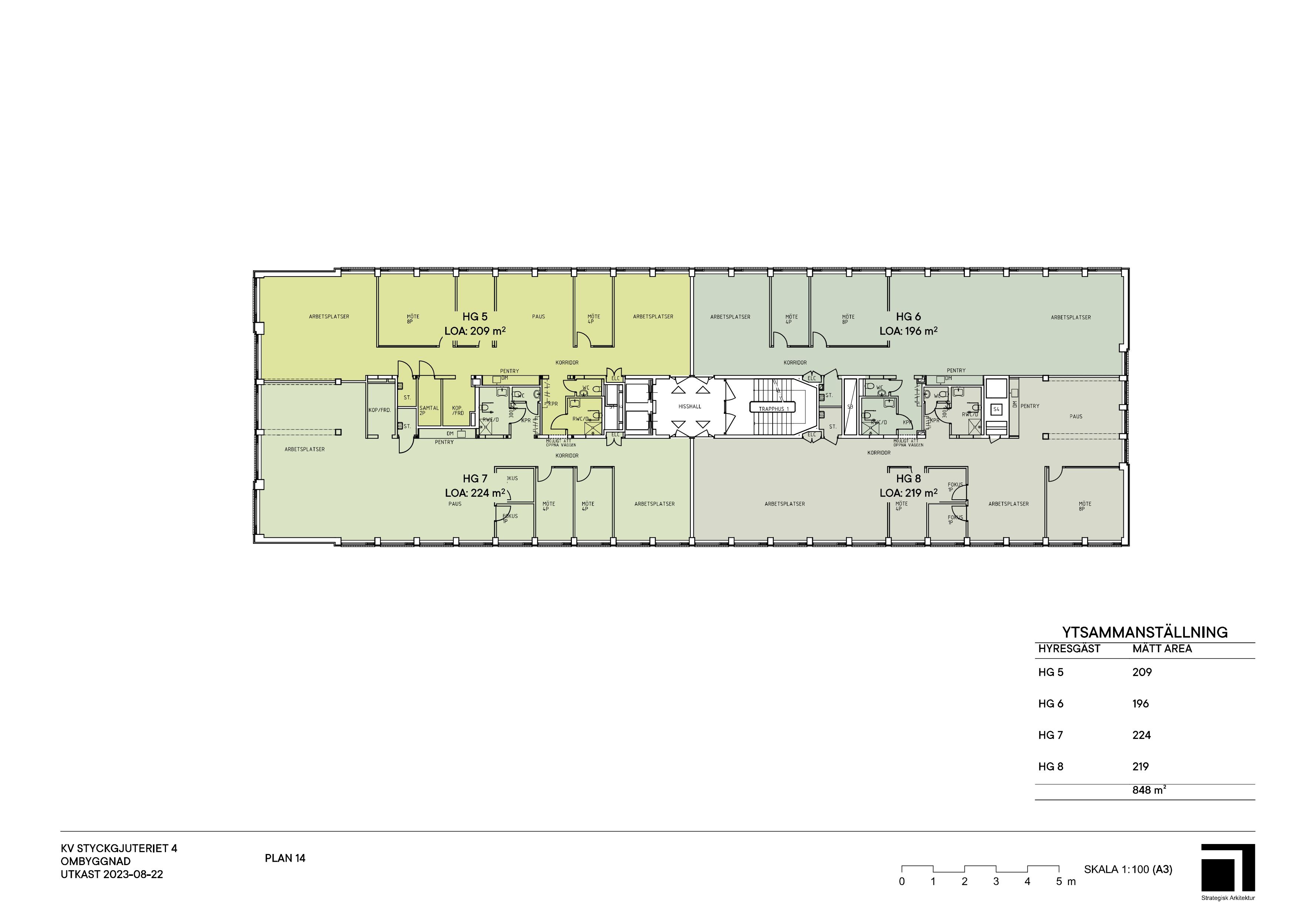 Våning 2 - 838 kvm. (uppdelning från 196 kvm): Våning 3 - 848 kvm. (uppdelning från 197 kvm): Våning 4 - 848 kvm. (uppdelning från 197 kvm)